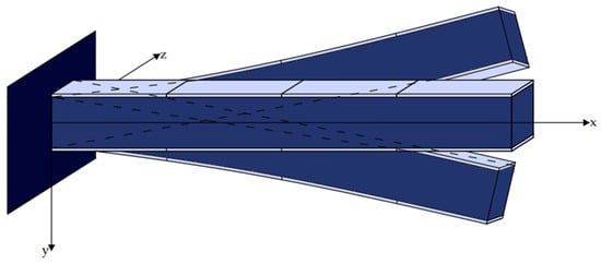This study focuses on reducing oscillations through the application of piezoelectric materials and complex control methods. Specifically, the placement of the piezoelectric actuators was considered. The actuators in Figure 4 are positioned throughout the beam, covering all positions labeled 1, 2, 3, and 4.