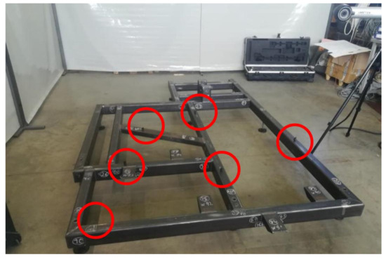 The presented tests of welded frames (frame No. 1 and frame No. 2) were carried out at the headquarters of PROTiM (Wysogotowo, Poland). Tests on the impact of the location of support points (frame No. 3) were carried out in the research laboratory located at the Department of Metrology and Measurement Systems of the Poznan University of Technology (Poznań, Poland).