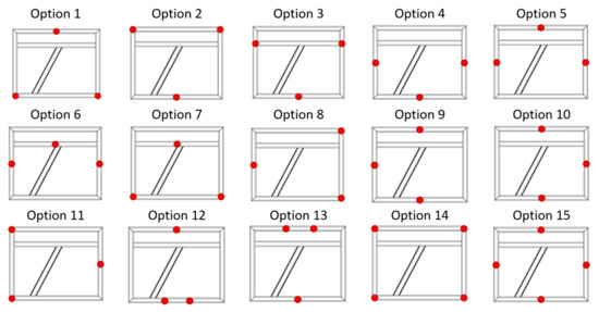 Figure 8 shows the schematics of designed frame for analysis of the effect of support points’ distribution on the results of the measurement, along with the marked support points.
