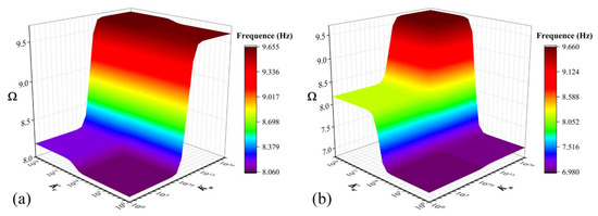 Regarding the Kerr foundation, as (Ku, Ks) changes in a sequence of (108, 0), (108, 108) and (1011, 108), the also increases (Table 7). In addition, for the same values of Ku and Ks, the value of Ω (of any frequency) at Kl = 1011 is no larger than that at Kl = 108 under any boundary condition.