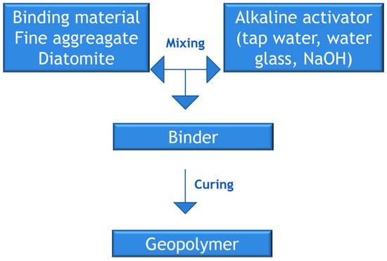 | 4 | Diatomite with the addition of different % of wood biomass ash; dry activator (NaOH mixed with wood biomass)—one part geopolymer |