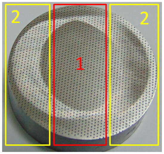 In the inner zone (1) (Figure 2), continuous contact occurred between the sliding elements; the space above the dimples was closed. In outer zones (2), discontinuous contact between the sample and the counter-sample developed; the space above the dimples was periodically opened and closed.