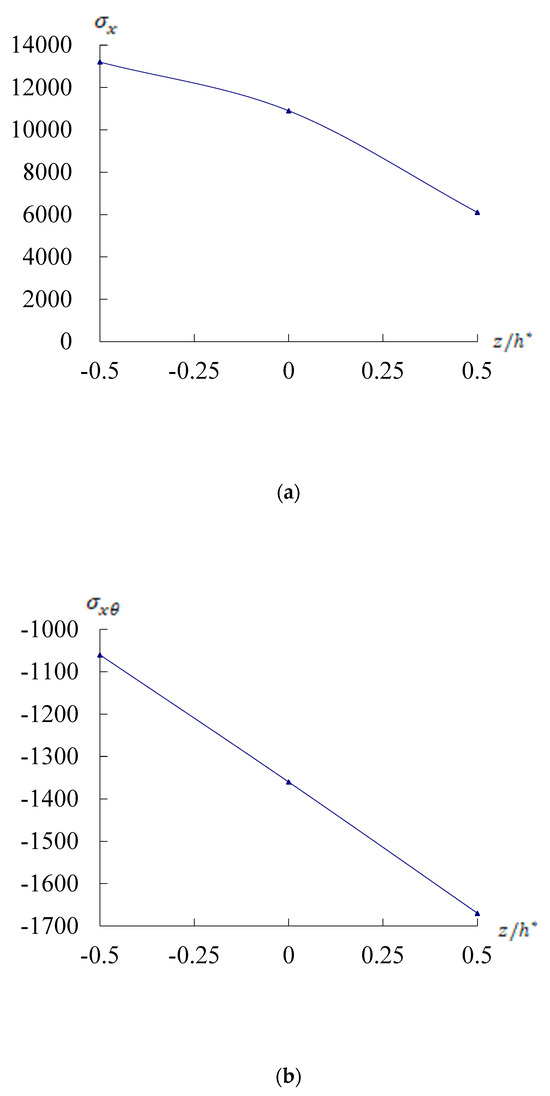 where and denote the weighting coefficients used in the GDQ calculations for the superscript (m)th-order derivative of functions, e.g., displacements (, and ) and shear rotations ( and ). and denoted the thermal expansion coefficients, denoted the thermal shear coefficient. And the stiffness can be defined as follows: