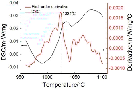 DSC and first-order derivative curves of Ti65 titanium alloy.