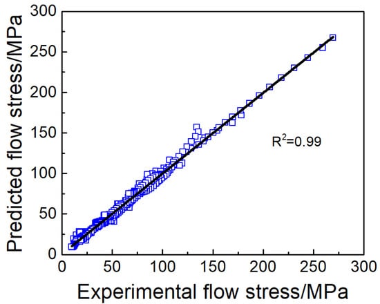where is the measured flow stress value, and is the average of the measured flow stress values; is the estimated value of flow stress, and is the average of the values of estimated flow stress; N represents the entirety of the data set.