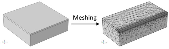 A two-layer heat conduction model is developed to imitate pulsed laser cleaning, assuming complete heat conduction forms between the two layers of material with no heat loss. The mesh is divided using a combination of free and mapping, and symmetry is applied to increase computing efficiency. Figure 2 displays the geometric model and meshing model.
