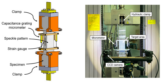 As shown in Figure 4, a loading system with both ends fixed is employed to simulate actual end boundary conditions encountered in engineering practice. To minimize the difficulty in aligning the specimens, the loading clamps and specimens were processed with high precision—the clamp processing, mold making, and specimen grinding were all performed on computerized numerical control machines. The tests were performed using the displacement-controlled loading method, and the deformation rate was set at 0.1 mm/min according to Ref. [43]. It has been substantiated that the actual response of UHPC under static loading can be obtained at this deformation rate.