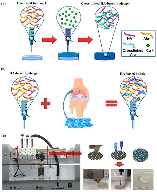 - Antich, C.; de Vicente, J.; Jiménez, G.; Chocarro, C.; Carrillo, E.; Montañez, E.; Gálvez-Martín, P.; Marchal, J.A. Bio-Inspired Hydrogel Composed of Hyaluronic Acid and Alginate as a Potential Bioink for 3D Bioprinting of Articular Cartilage Engineering Constructs. Acta Biomater. 2020, 106, 114–123. [Google Scholar] [CrossRef] [PubMed]