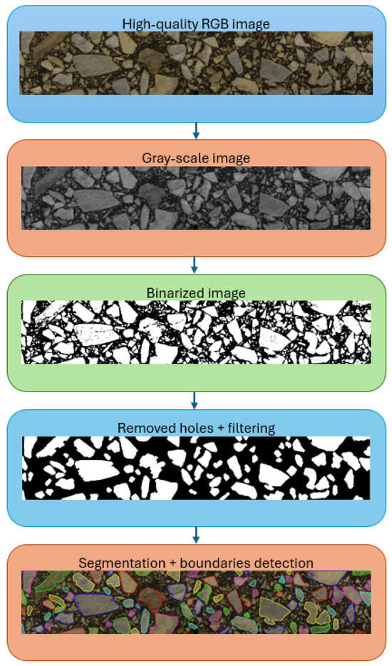 - Klimczak, M.; Jaworska, I.; Tekieli, M. 2D Digital Reconstruction of Asphalt Concrete Microstructure for Numerical Modeling Purposes. Materials 2022, 15, 5553. [Google Scholar] [CrossRef] [PubMed]