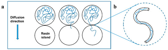 (a) Processes of resin movement. (b) The model of a random walk chain diffusing in a tube.
