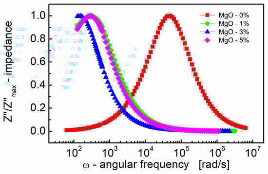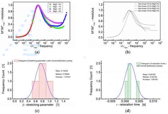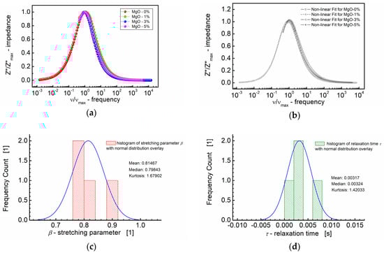 Figure 8a,b, it can be concluded that deviations from the “master curve” are visible mostly on the high-frequency side. These deviations have been revealed by the statistical variations in the relaxation behavior across different MgO compositions in the BST thin films. First,