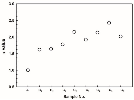 To determine the optimal addition amount of SZMO and ZMMO reinforcements of SZMO-ZMMO/Al-20Si composites with high dimensional stability, parameter α was proposed as expressed in Equation (5):