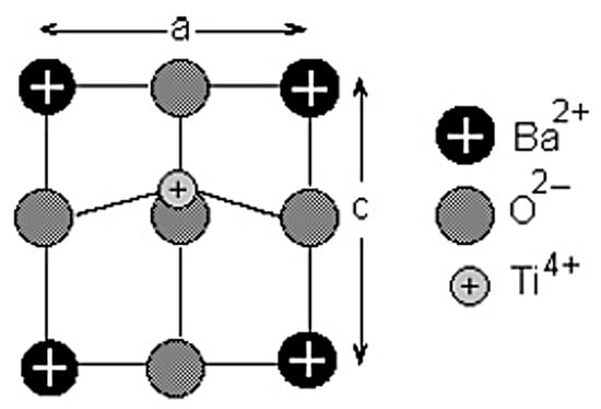 The tetragonal unit cell of BaTiO3. Reprinted with permission from ref. []. Copyright 2003, Springer Nature.