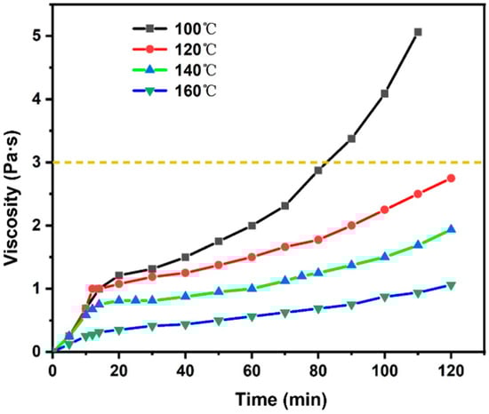 Viscosity–time curves of epoxy-modified asphalt binder at different temperatures.