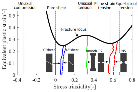 - Bao, Y.; Wierzbicki, T. On fracture locus in the equivalent strain and stress triaxiality space. Int. J. Mech. Sci. 2004, 46, 81–98. [Google Scholar] [CrossRef]