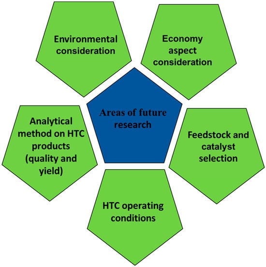 Areas of future research involving the application of catalysts in HTC treatment.