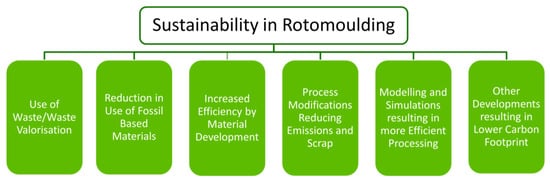 Chicago/Turabian StyleKelly-Walley, Jake, Peter Martin, Zaida Ortega, Louise Pick, and Mark McCourt. 2024. "Recent Advancements towards Sustainability in Rotomoulding" Materials 17, no. 11: 2607. https://doi.org/10.3390/ma17112607