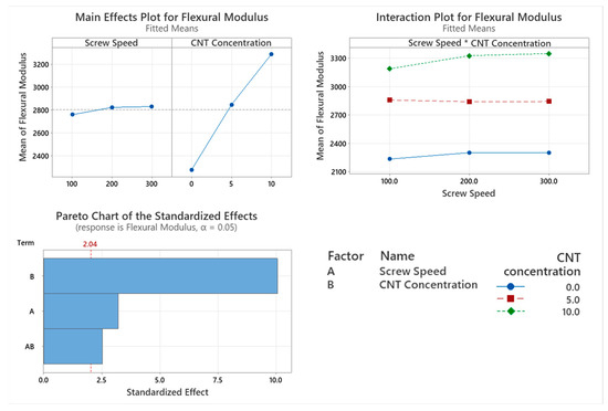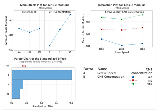 6] found that the tensile modulus of the PC/ABS/CNT PNC was enhanced with increasing filler concentration. While screw speed is not a significant factor that affects tensile modulus, the