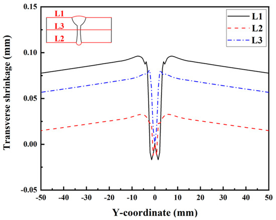 Transverse shrinkage deformations along L1, L2, and L3 in Case 2.