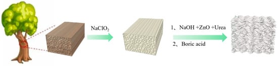 Balsa wood was purchased from Guangzhou Qigao Balsa Wood Trading Co., Ltd., Guangzhou, China; sodium chlorite, glacial acetic acid, sodium hydroxide, hydrochloric acid, and zinc oxide were purchased from Shanghai Lingfeng Chemical Reagent Co., Ltd., Shanghai, China; and urea and boric acid were purchased from Shanghai McKlin Biochemical Technology Co., Ltd., Shanghai, China.