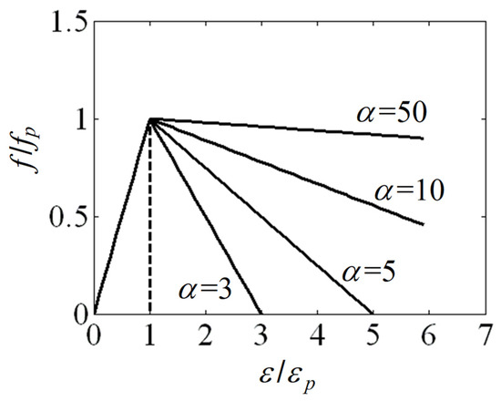 where α is the maximum to peak strain ratio. As shown in Figure 3 for various cases of α, the maximum to peak strain ratio α is related to ductility of mortar. Therefore, the ductility number λ can be defined as