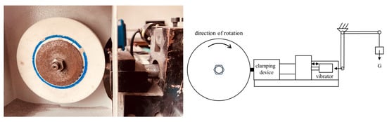 The hardness, bending strength, relative density, and wear resistance under impact conditions were used to evaluate the performances of the matrices. An HR-150A hardness tester was used to test the hardness of the samples. The three-point bending strength was tested using a computer-controlled universal material testing machine (CTM2500) with a span of 24.5 mm and loading speed of 20 N/s. A PTM2450 pendulum impact tester was used to measure impact toughness. The relative density in this study was defined as the ratio of the actual density of the matrix sample to its theoretical density, and its actual density was obtained using the Archimedes principle of buoyancy. Impact wear resistance testing was performed using a wear ratio tester (HMH-25) with a corundum grinding wheel (diameter: 125 mm; particle size: 80 US mesh; hardness L—moderate hardness). The impact was achieved using a mechanical vibrator (amplitude: 6 mm, frequency: 20 to 60 Hz, impact force: 1 to 18 kgf). Each test group was subjected to a load of 25 N (conforming to the pressure during drilling), a linear velocity of 4.2 m/s, and a wear time of 0.5 min. The impact energy in the experiment was set at 0.9 J by adjusting the position of the vibrator, and the impact frequency was 45 Hz. A schematic is shown in Figure 1. In this article, the impact tribological performance refers to the wear rate, which is the mass loss of the sample per minute (g/min). The fracture surfaces of the samples after the bending strength test and the surface morphology of the worn samples were analyzed via SEM, and the diamond on the fracture surface of the diamond-containing sample was tested via energy-dispersive X-ray spectroscopy. The surface roughness of the worn sample was also measured using a 3D laser scanning confocal microscope. The abrasive debris generated during the experiment was collected, and a sieving test and SEM observations were performed.