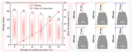 - The addition of zeolite powder increases the viscosity of recycled concrete, leading to a gradual decrease in the slump of ZPRC as the zeolite powder content increases.