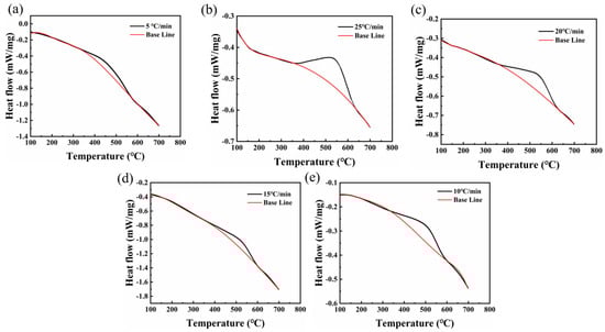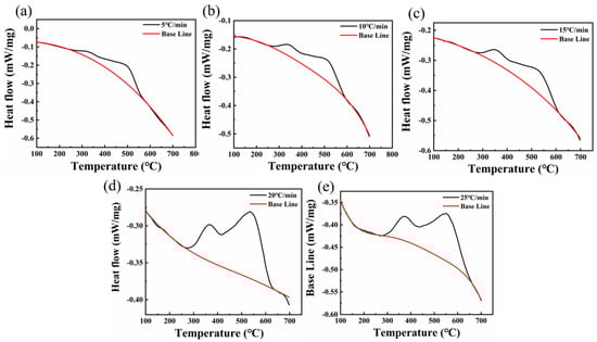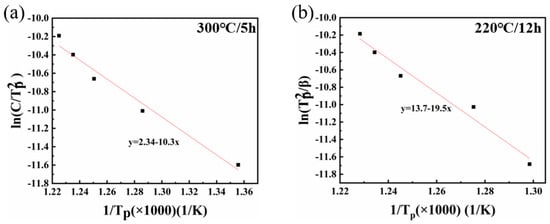 - Each sample demonstrated exothermic peaks proximate to 600 °C at varying heating rates. Notably, the 220 °C/12 h sample exhibited two such peaks, one near 300 °C and another around 600 °C. The precipitation activation energies for these exothermic peaks at 600 °C in the 300 °C/5 h and 220 °C/12 h samples were 85.8 kJ/mol and 161.12 kJ/mol, respectively.