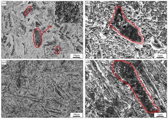 - To confirm this outcome, the specimen underwent a tempering process at 600 °C for a duration of 67 min. A subsequent microscopic examination revealed a significant decomposition of the M/A structure, indicating a residual volume fraction at less than 1%. Additionally, the sample’s hardness decreased to approximately 450 HV, a consequence of the M/A decomposition post-tempering.