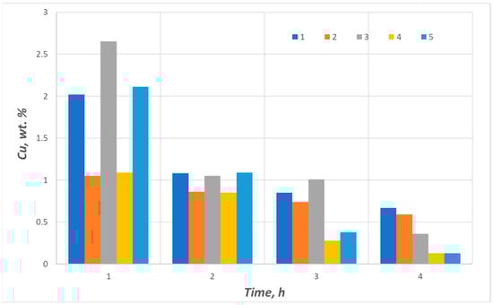 - The application of reducer addition, such as sunflower husk pellets or walnut shells, ensures copper content reduction at three hours to values lower than 0.5 wt%, which means that the applied waste slag can be safely stored or used as a raw material in other economic sectors.