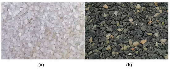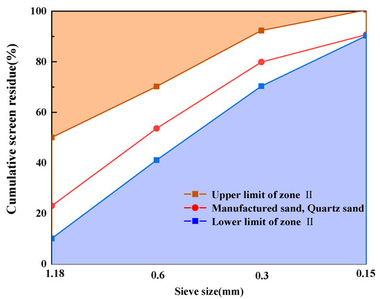 The appearance of the MS is illustrated in Figure 1, and this MS was produced through the wet process in Sanhe City, Hebei Province, China. Through the screening test, MS and QS were found to have the same particle size distribution curve, as shown in Figure 2. The main performance indicators of MS and QS are shown in Table 1. Other raw materials and specific properties are described in detail in [34].