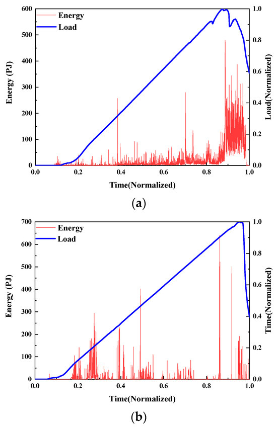 Information entropy can be used to indicate the degree of disorder of AE energy. When the energy system is ordered, the information entropy is at a relatively low value; when the energy system is more disordered, the information entropy is at a relatively high value [42]. The mathematical expression for information entropy is presented in Equation (5).
