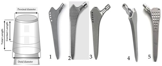 Currently, there are approximately 60 different types of cementless stem components for hip prostheses available on the market []. Understanding the behavior of each prosthesis under specific clinical conditions is crucial [,,,,,,,,,,].
