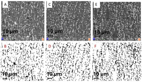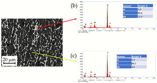 Ti implant alloys have a dual-phase microstructure (α + β). Their distribution was estimated using a field emission scanning electron microscope by SE (secondary electron image) and BE (backscattered electron image). Results are shown in Figure 4 and Table 2.