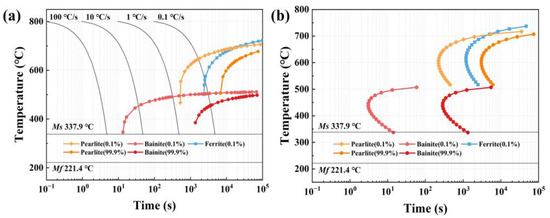 (a) CCT and (b) TTT curves of Cr-Ni-Mo steel.