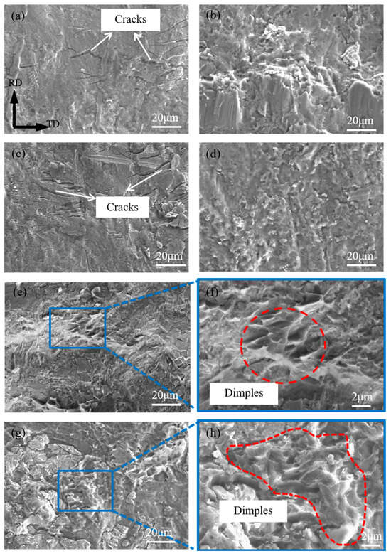 - With the increase in bonding strength, the fracture surfaces on both sides of the shear fracture gradually change from brittle fracture to ductile fracture. This is attributed to the fact that at low bonding strengths, the shear fracture occurs at the interface between the two plates, while at high bonding strengths, the shear fracture occurs within the metal matrix.