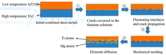 - Qi, Z.C.; Yu, C.; Xiao, H. Microstructure and bonding properties of magnesium alloy AZ31/CP-Ti clad plates fabricated by rolling bonding. J. Manuf. Process. 2018, 32, 175–186. [Google Scholar] [CrossRef]