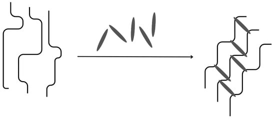 A classical realisation of ionic crosslinking is found in the case of alginates, which will be described in more detail in Section 6.1.1. In sodium alginates, the sodium ions are usually replaced by calcium cations and the gel formation process consists of a few steps. In the initial stage, the monocomplexes are formed, and in further steps, they transform into dimers and multimers, which is commonly known as the “egg box” structure [57]. According to another theory, the crosslinked polymer chains that form the dimer are not parallel but approximately perpendicular to each other. This results in a tilted “egg box” structure [58]. Similar properties have been described for gellan gum [59].