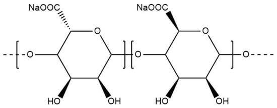Considered non-toxic and inexpensive, alginates are one of the most important biopolymers. They are obtained from three species of brown algae: Macrocystis pyrifera, Laminaria digitata, and Laminaria saccharina. This heteropolysaccharide consists of β-D-mannuronic acid and α-L-guluronic acid subunits (Figure 12). Its chemical and physical properties depend on the arrangement of these monomers, the ratio of each monomer, and the molecular weight [87,88].