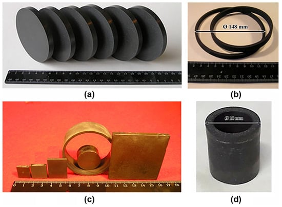 - Häßler, W.; Scheiter, J.; Hädrich, P.; Kauffmann-Weiß, S.; Holzapfel, B.; Oomen, M.; Nielsch, K. Properties of ex-situ MgB2 bulk samples prepared by uniaxial hot pressing and spark plasma sintering. Phys. C Supercond. Its Appl. 2018, 551, 48–54. [Google Scholar] [CrossRef]