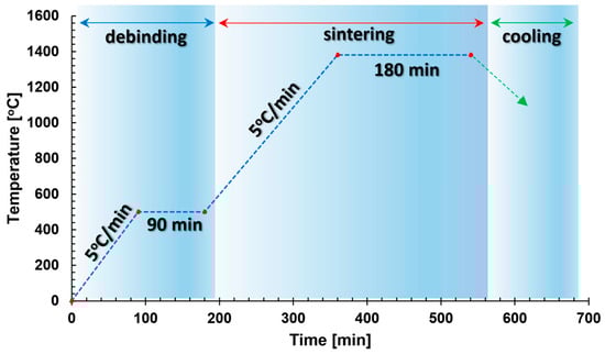 Thermal cycle of debinding and sintering process of 17-4 PH BASF Ultrafuse material [].