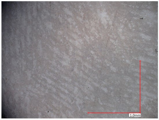 The results of porosity and density for the three examined samples are presented in Table 6. Archimedes method investigations confirmed that samples printed using the PBF-LB/M technique exhibited lower porosity and consequently higher density. These values amounted to 4.51% and 7.397 g/cm3, respectively. The density of MEX samples was 7.356 g/cm3. Compared to the PBF-LB/M sample, it was lower by just under 1%, while the porosity was higher by 0.52%, reaching 5.03%.