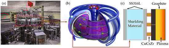 (a) Tokamak device in the nuclear industry; (b) schematic of Tokamak device structure; (c) cross-section of a vacuum radiation shielding structure [].