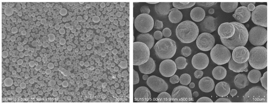 The original 6061 aluminum alloy powder, production lot number G2019ZFGA010, was from AVIC Gighty Powder Metallurgy Technology (Beijing, China) Co. Given the importance of powder quality in determining the quality of 3D-printed parts, a combination of low-speed ball milling and vacuum drying was used to process the original powder. The particle morphology of the material powder after ball milling is shown in Figure 1.