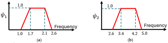 In SÉTRA [13], Backman and the half-sine function are adopted, and two expressions are proposed to evaluate NEQ in the case of a very dense crowd (Equation (3)) and a sparse and dense crowd (Equation (4)), introducing dependence on the structural critical damping (ξ). These expressions, derived from 500 experimental tests, represent the 95% characteristic value. It is worth noting that the number of pedestrians can be evaluated as reported in Equation (5), where A is the deck area, and is the number of pedestrians per unit surface. The values for can be assumed as spare (), dense (), and very dense (). The resulting expression is reported in Equation (6), where is the frequency dependent function reported in Figure 1a. Further on, the second harmonic of the crowd needs to be considered in case of class I and II urban footbridges for which a very dense or dense condition is expected, respectively, and (1) a lower acting force needs to be considered, as reported in Equation (7), adopting (2) the function reported in Figure 1b.