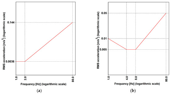 ISO [15]: RMS normalized thresholds for horizontal (a) and vertical (b) direction.