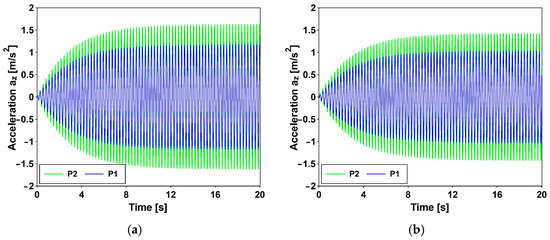 Time history of accelerations. Variant A: crowd conditions evaluated based on (a) British Standard [16] and (b) SETRA [13].