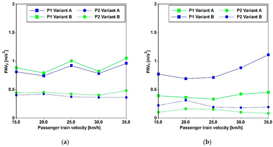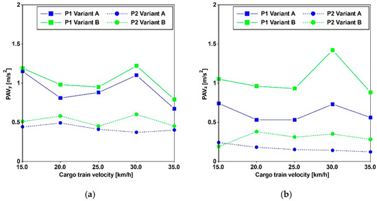 Comparison between Variant A and Variant B. PAVs for cargo train passages in the Y (a) and Z (b) directions.
