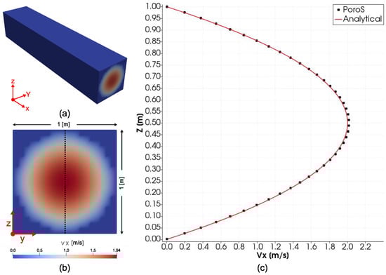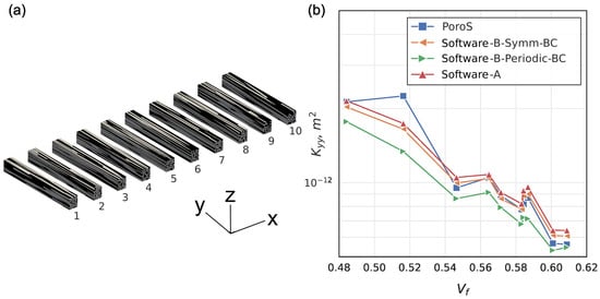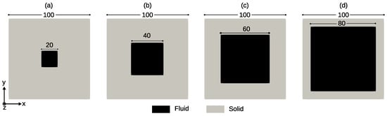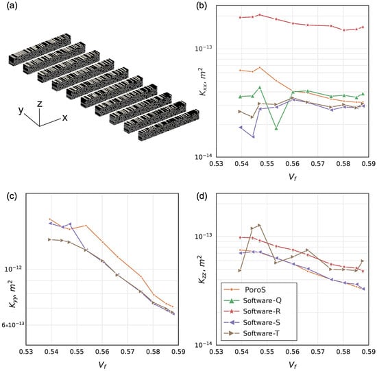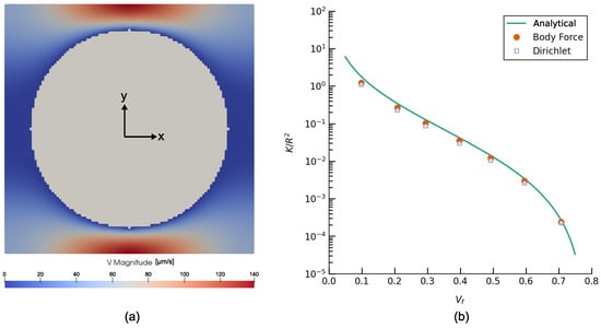 In this work, for the calculation of permeability, a uniform unit body force is applied in an appropriate direction depending on the flow problem under consideration; i.e., for s flow problem in the X direction, is imposed; similarly, for flow problems in the Y and Z directions, and are imposed, respectively.