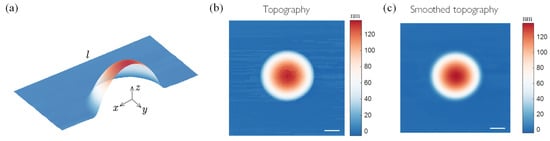 (a) Schematic diagram of the bubble model: the topography of bubble (b) before smoothing and (c) after smoothing. Scale bars: 1 μm.